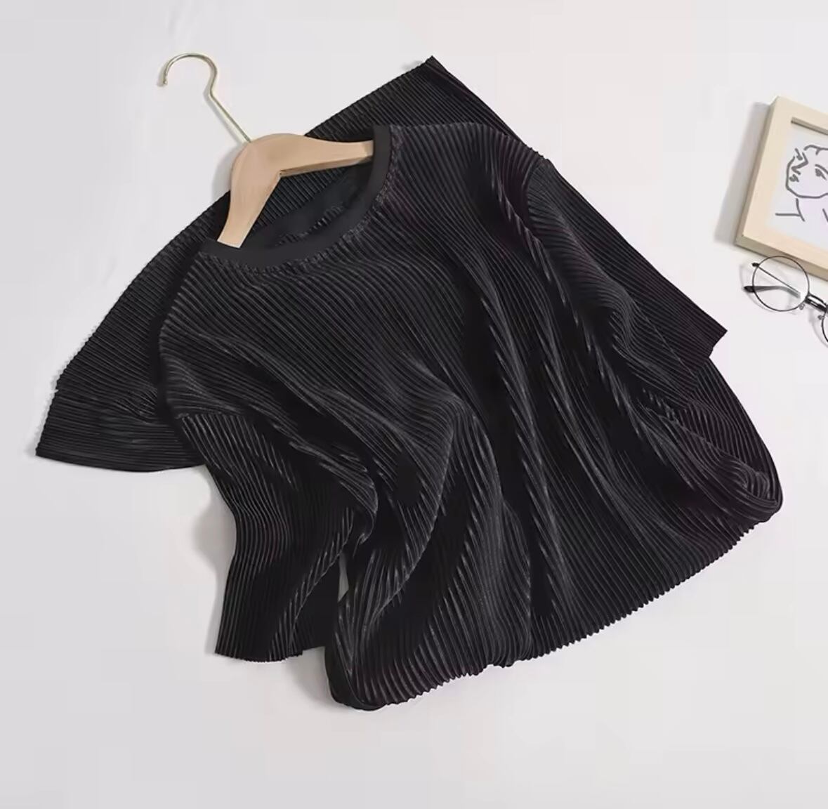 # おしゃれで快適な #プリーツ #カジュアルドレス #ラウンドネック #半袖 #つま先の開いたドレス #膝丈 #無地 #伸縮性 #ニット #ミッドレングス!このアイテムは、デイリースタイルから特別なシーンまで幅広く活躍することでしょう♡