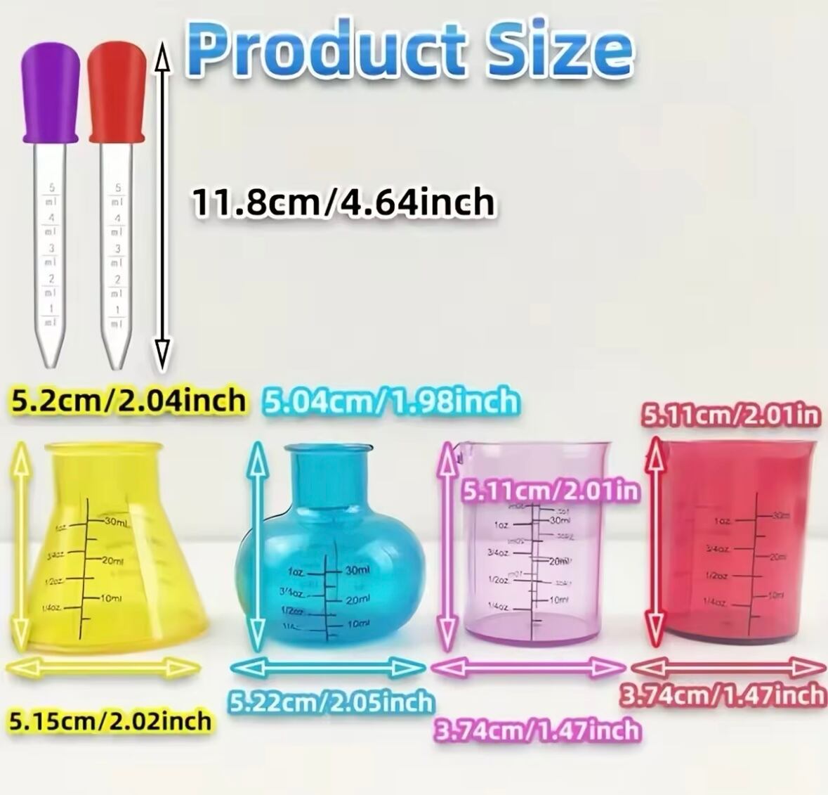 4 色の計量カップ 4 色のスポイト 教育用ミニ計量カップ 教材、プラスチック科学実験 感覚 DIY