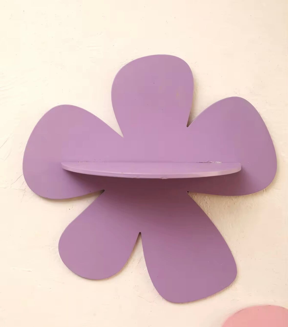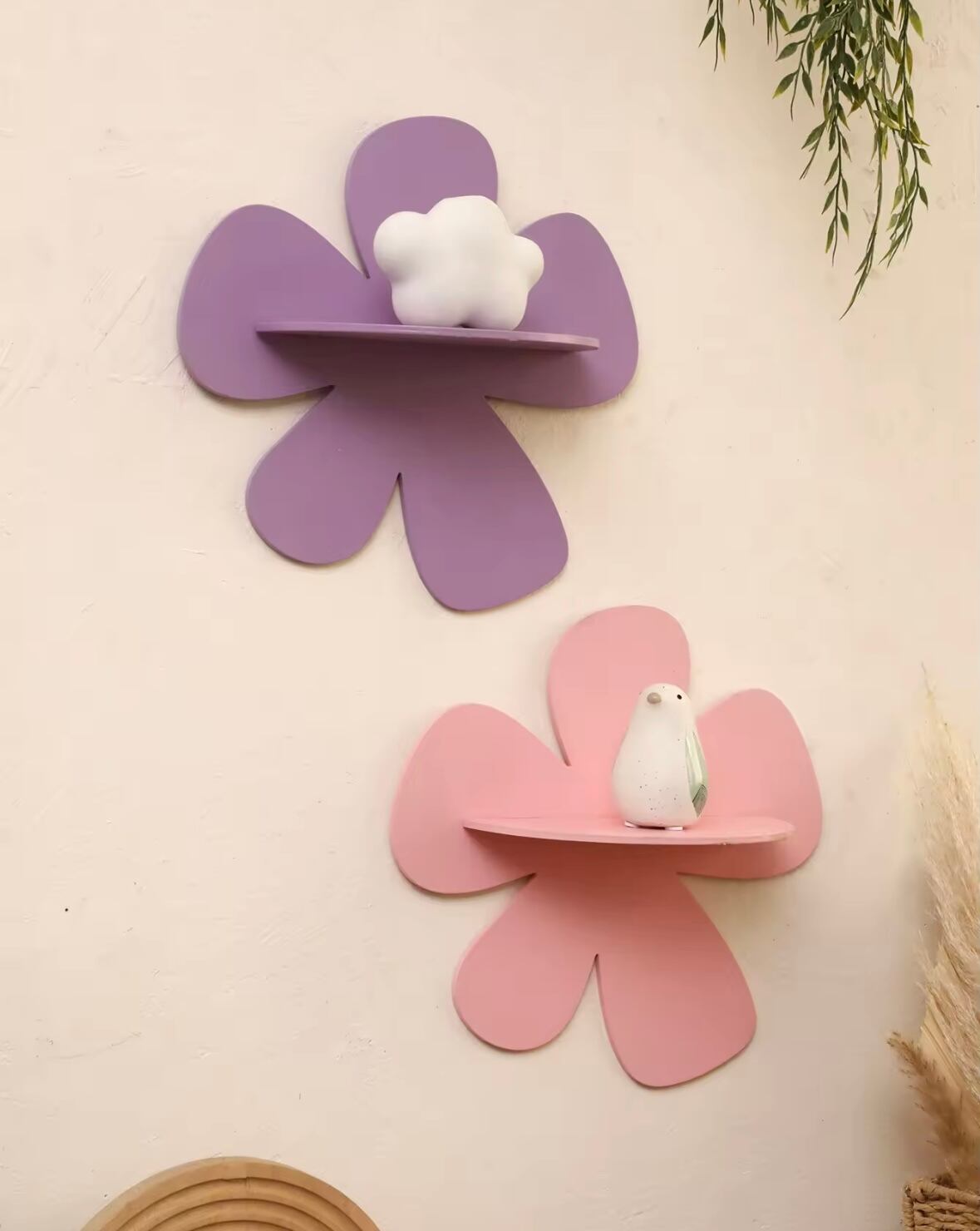 子供部屋用の花の壁掛け棚,フローティング収納棚,ピンクと紫の花,かわいい,装飾,1個