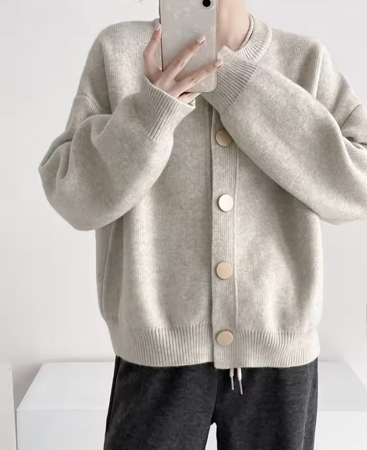 #ニット #ラウンドネック #シングルブレスト #セーター #ルーズカーディガン