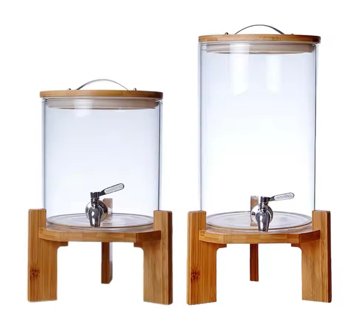この樽ディスペンサーは、ガラス素材による透明感が特徴で、中の飲み物を美しく見せるだけでなく、密閉型のデザインが内容物の鮮度を保ちます。蛇口付きで使いやすく、パーティーや集まりでのドリンクサーブにもぴったりです。ワインボトルなどの保存にも最適なアイテムで、自宅での贅沢なひとときを楽しむことができます!